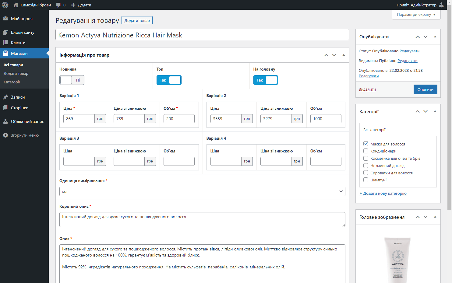 Як виглядає зсередини. Додавайте необмежену кількість товарів через панель керування.